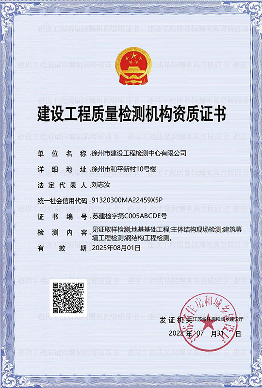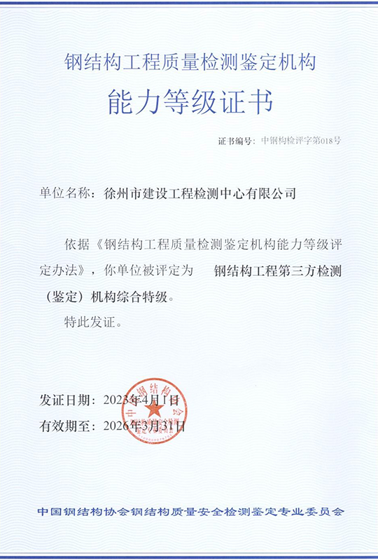 徐州市建設(shè)工程檢測中心有限公司(以下簡稱徐建檢測公司)是徐州市產(chǎn)城發(fā)展集團(tuán)有限公司(以下簡稱產(chǎn)城集團(tuán))的全資子公司。徐建檢測公司前身為徐州市建設(shè)工程檢測中心,2018年事轉(zhuǎn)企改制,2020年4月,完成轉(zhuǎn)企改制資產(chǎn)劃轉(zhuǎn)工作。 徐建檢測公司是集檢測、檢驗、鑒定、咨詢等技術(shù)服務(wù)為一體、具有獨立法人資質(zhì)的綜合性第三方服務(wù)機(jī)構(gòu)。公司主要從事建設(shè)工程領(lǐng)域相關(guān)工程質(zhì)量檢測及技術(shù)咨詢服務(wù),業(yè)務(wù)覆蓋地基基礎(chǔ)、建筑材料、建筑結(jié)構(gòu)、鋼結(jié)構(gòu)工程、市政工程、綠色建筑節(jié)能工程、建筑安全與施工設(shè)備、建筑防水、建筑水電、裝飾裝修、建筑物防雷、室內(nèi)環(huán)境、房屋安全鑒定、城市軌道交通工程等專業(yè)領(lǐng)域。......